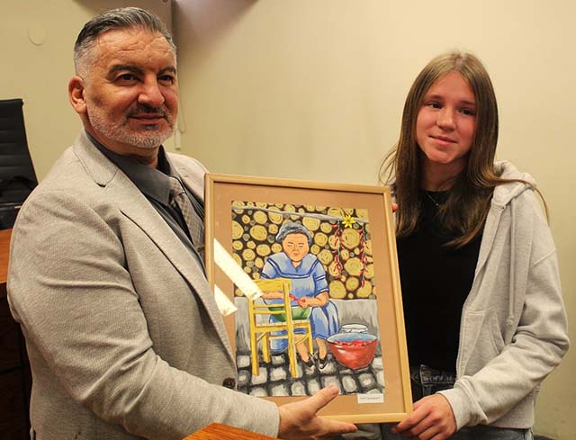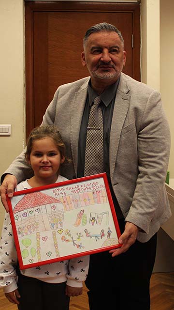 Добитница многих награда на ликовним конкурсима и талентована и успешна атлетичарка Уна Глигоријевић, ученица ОШ „Синиша Јанић“, поклонила је председнику скупштине своју слику.